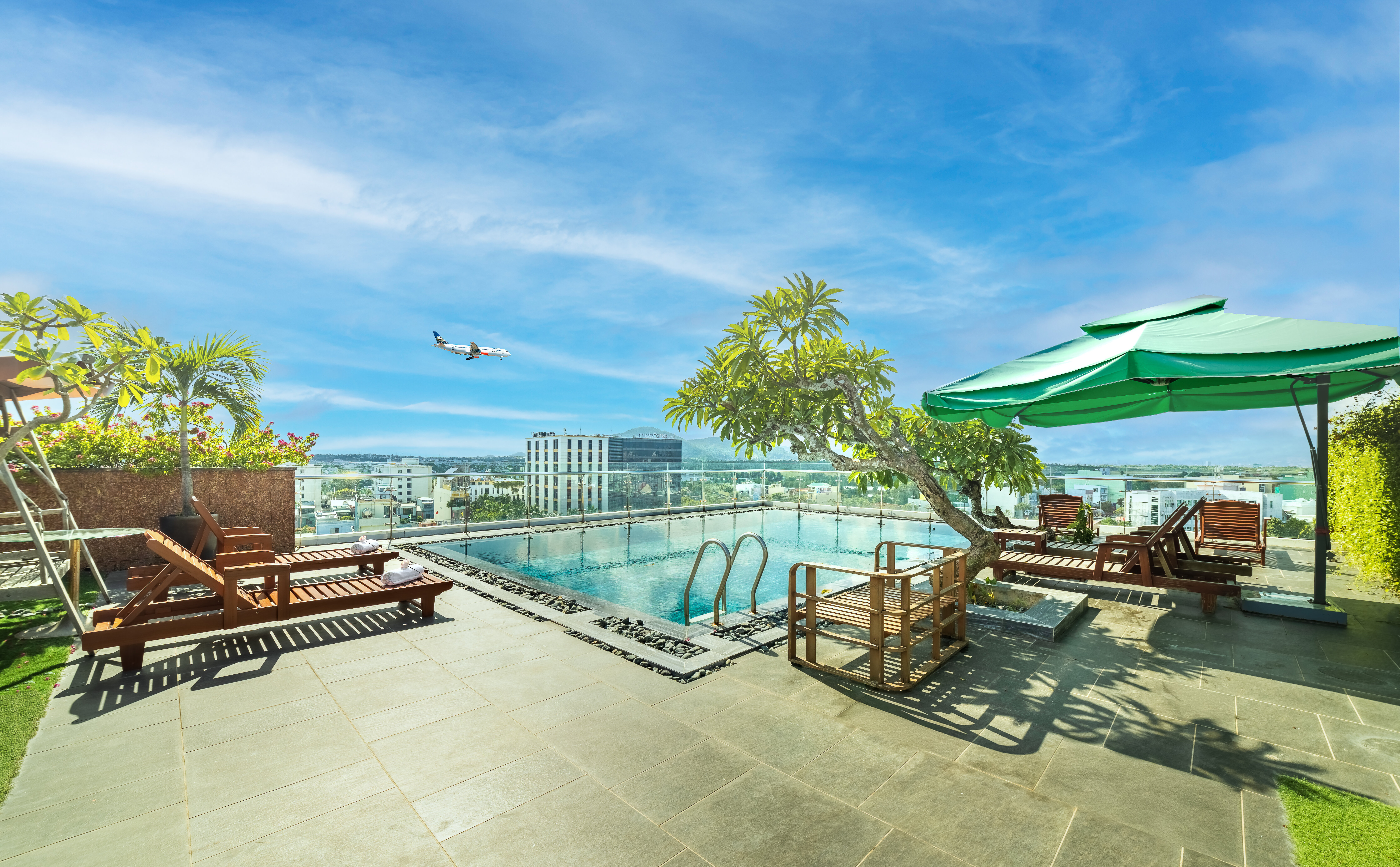 Tận hưởng những phút giây thư giãn tuyệt đối tại hồ bơi, nơi bạn có thể vừa đắm mình trong làn nước mát, vừa chiêm ngưỡng view sân bay tuyệt đẹp.